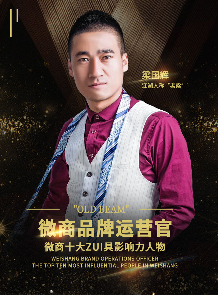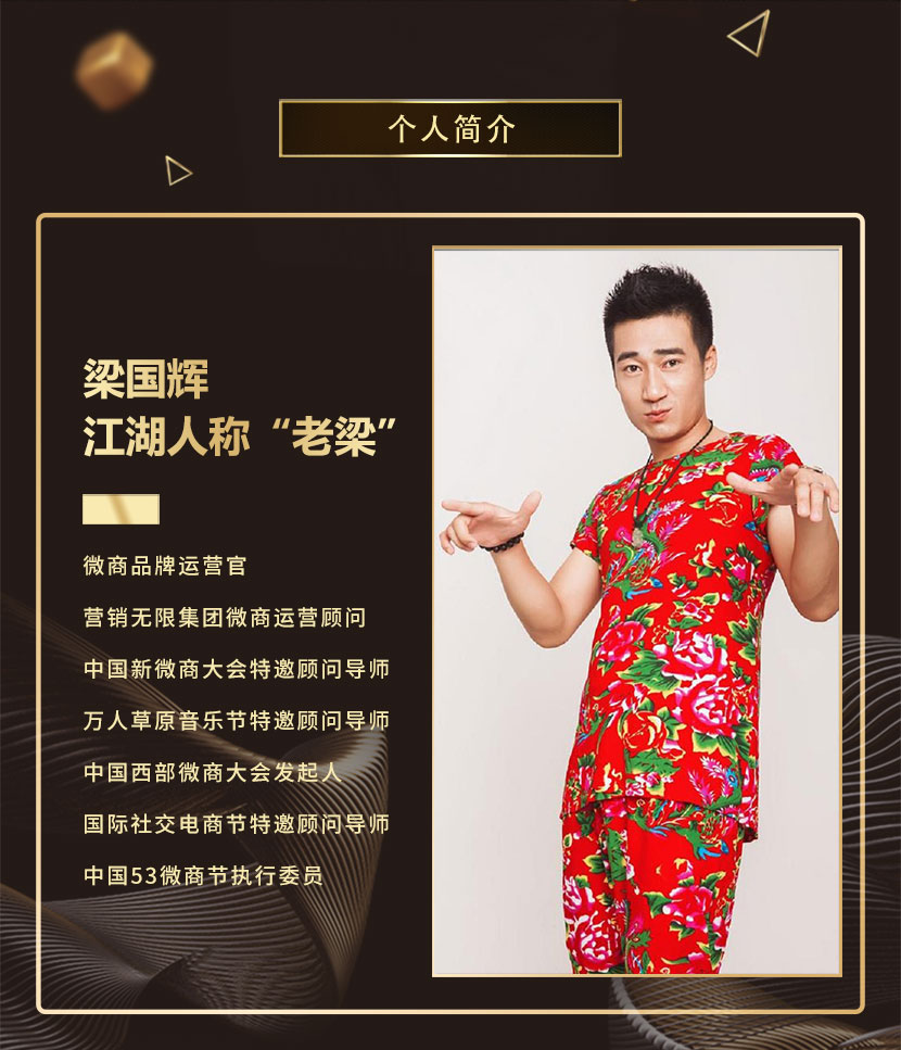 江湖人称“老梁”!天津微盟企业管理咨询有限公司创始人;老梁微学堂创始人;中国新微商大会特邀嘉宾导师;