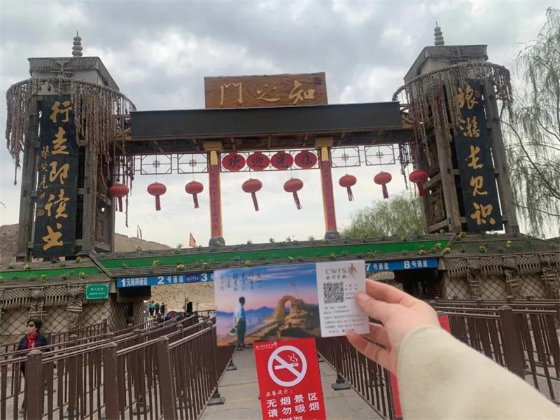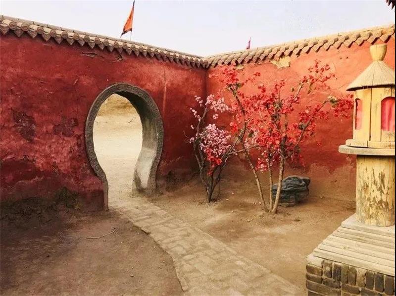 入口是一个拱形门洞,从这个角度来看,能看见远处真正的月亮门,两个拱形门洞照相呼应,有双月映玉之意,两个月就是一个朋字,有朋自远方来,不亦乐乎的意思~也是再次欢迎各位游客朋友来到镇北堡西部影城参观游览。