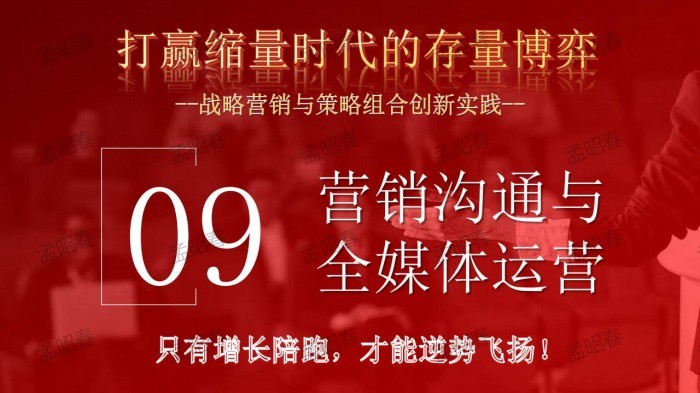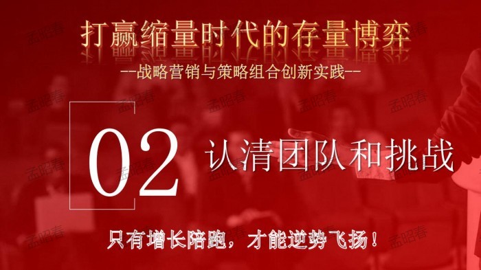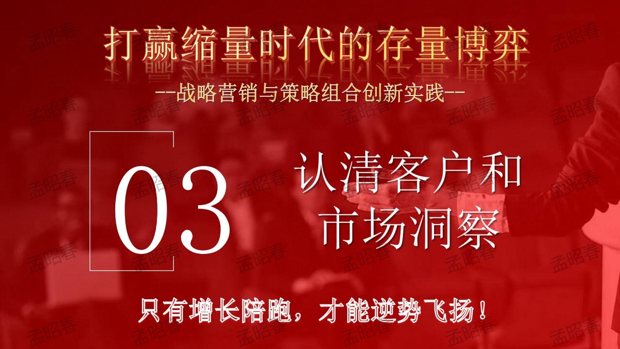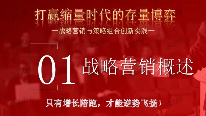 畅销书作者孟昭春老师品牌课程:《打赢缩量时代的存量博弈:战略营销与策略组合创新实践——营销增长的三板斧与十八策》只有增长陪跑,才能逆袭飞扬!