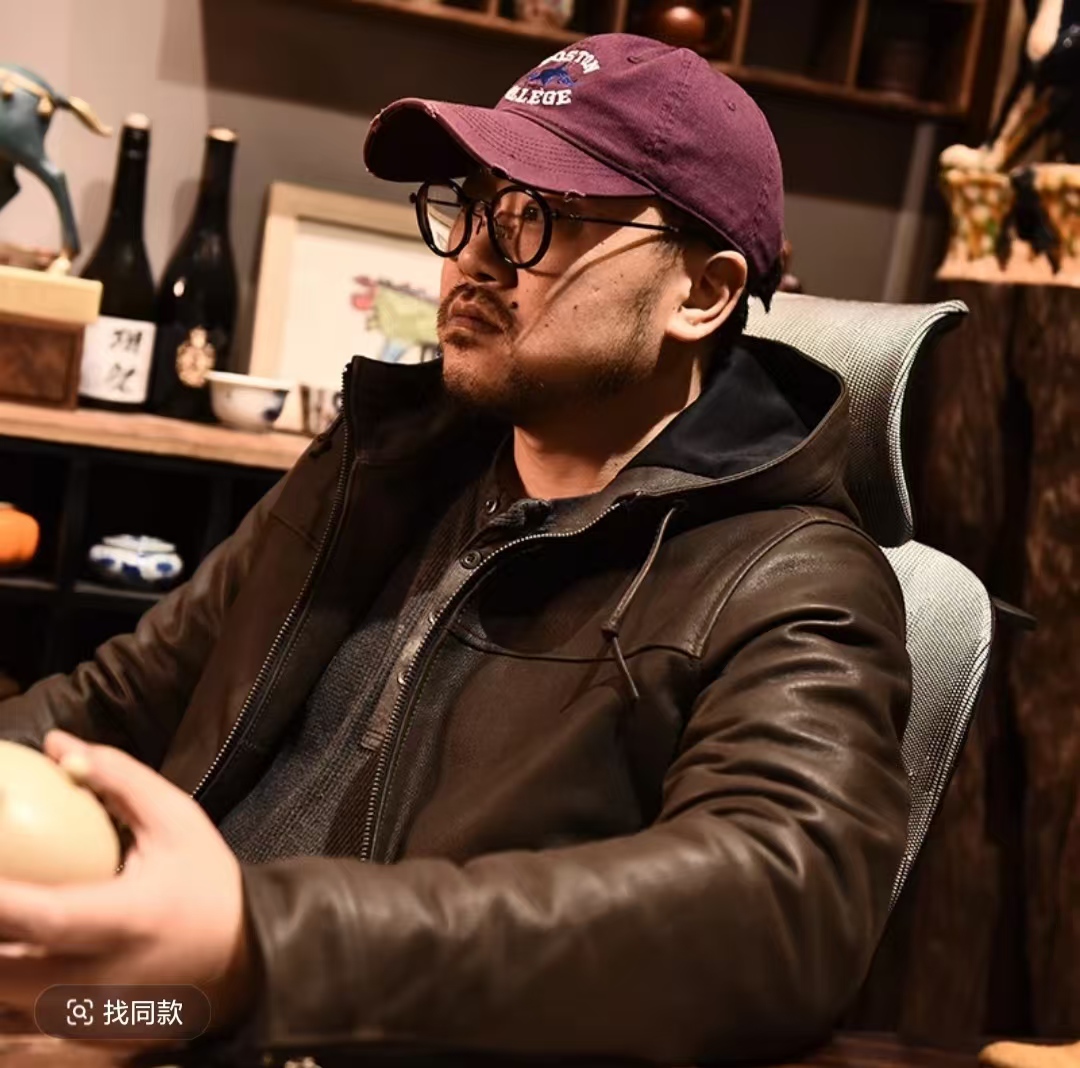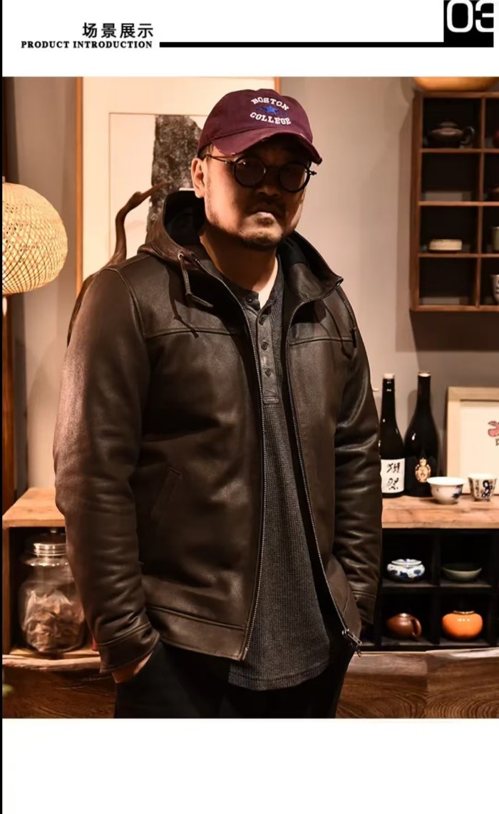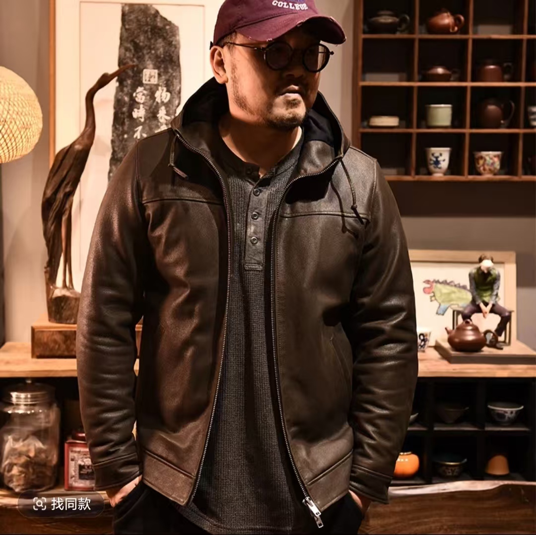 周鹏:张官周:头层牛皮 9875男士连帽休闲 时尚翻领防风保暖修身秋衣