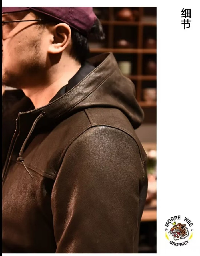 官官真皮冬季上新:头层牛皮 9875男士连帽休闲 时尚翻领防风保暖修身秋衣。“当我们穿着一件喜爱的衣服的时候,好运就可能发生。一件好衣服,是幸福的通行证”——伊芙.圣.洛朗