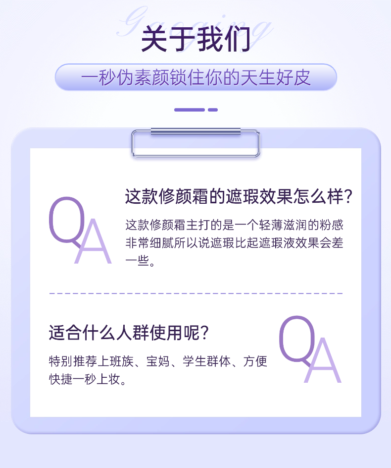四季莱源双层空间修颜霜,全新升级包装,一秒上妆长效持妆。轻薄裸感、自然遮瑕控油,搭载多重养肤成分与硬核技术,一瓶兼顾遮瑕、隔离、养肤,敏感肌适用,打造清透持久的伪素颜好肤质。