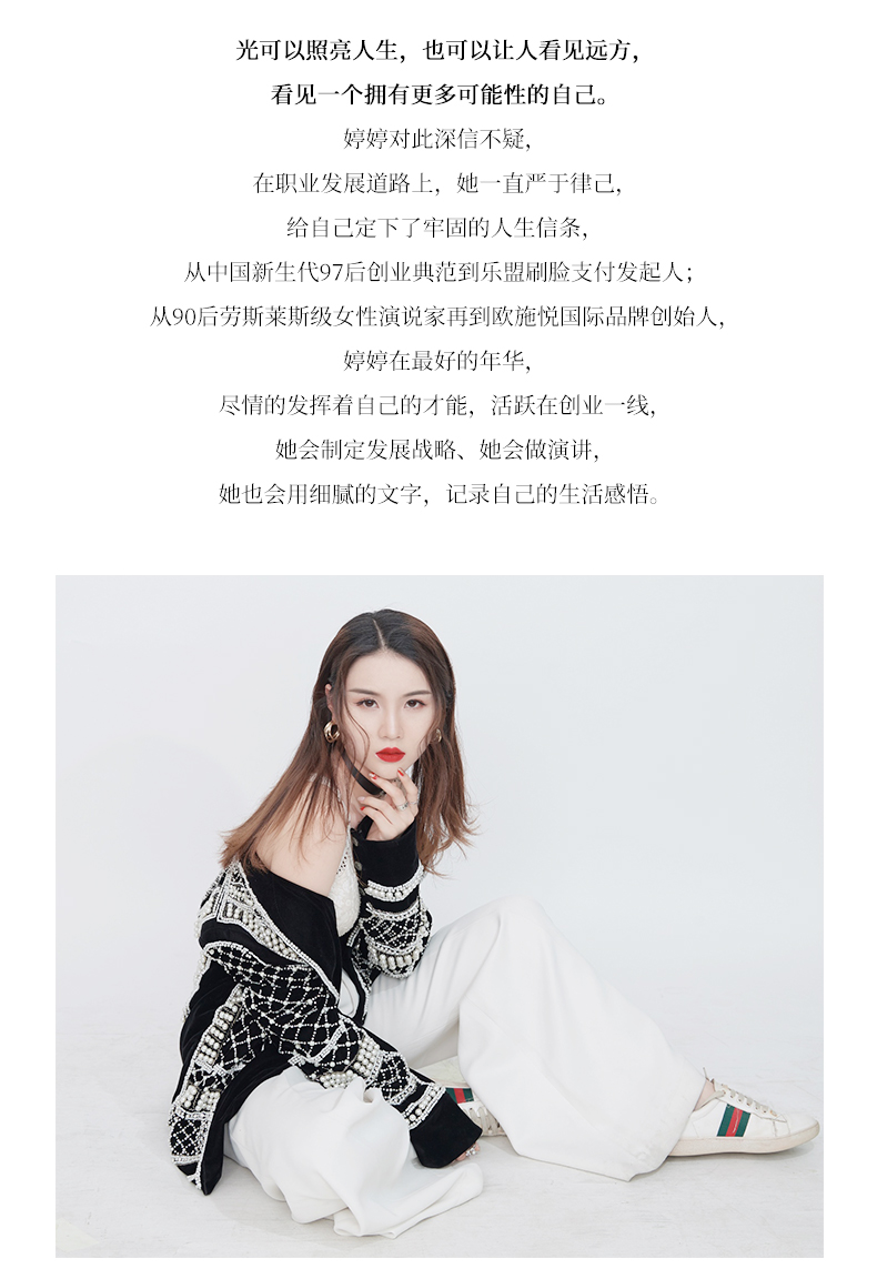权益支付益健康创始人;世届商学会教育主席;超级卖手赋能总教练;90后励志女性演说家;中国新零售大学特聘导师;畅销书《我的人生我做主》作者;CCTV《中国好品牌》节目发起人