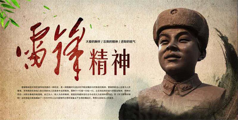 弘扬雷锋服务人民、助人为乐的奉献精神,干一行爱一行、专一行精一行的敬业精神,锐意进取、自强不息的创新精神,弘扬艰苦奋斗、勤俭节约的创业精神。用实际行动实现了大爱于国的宏图大志,利国利民的高尚情操。