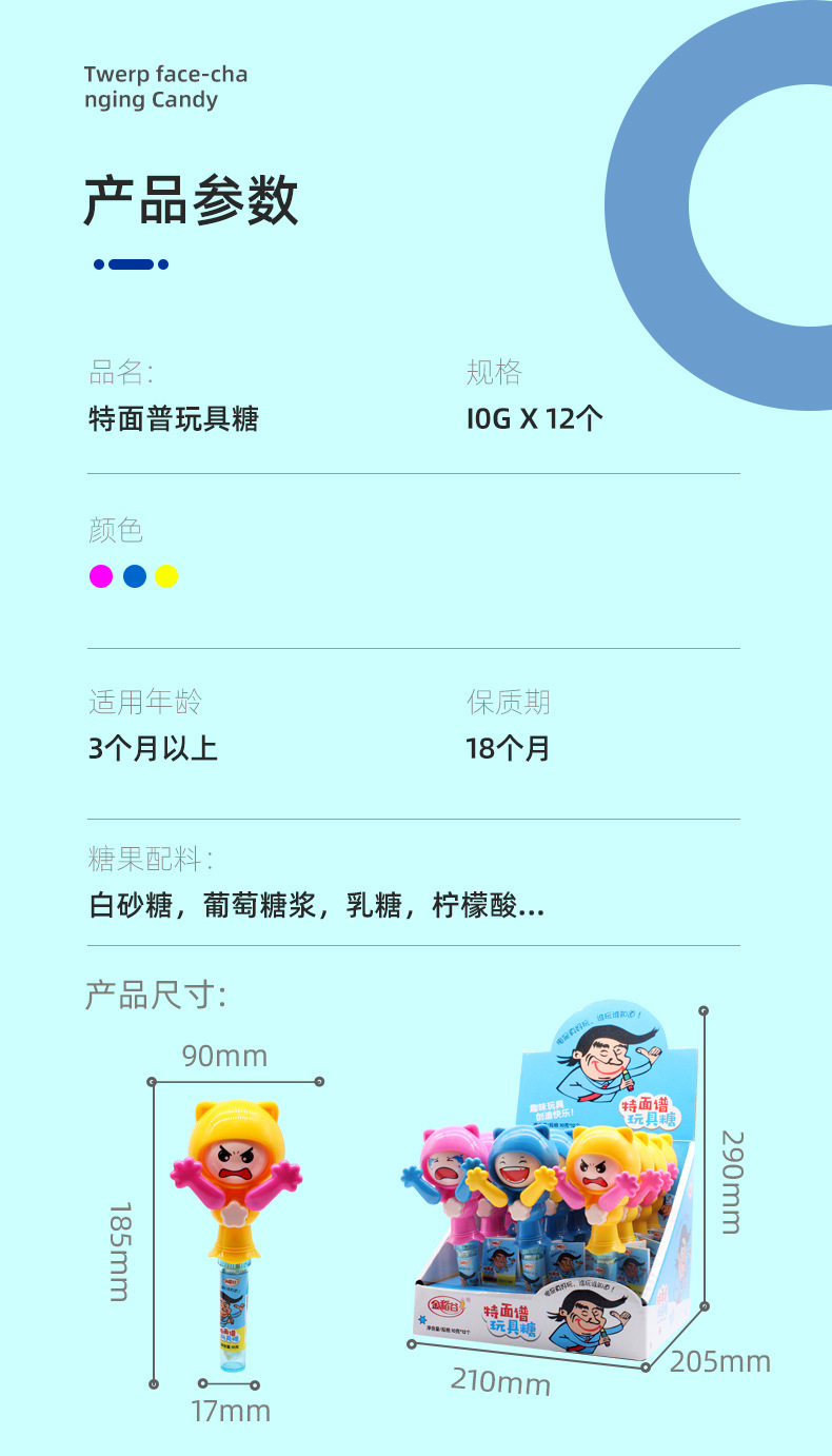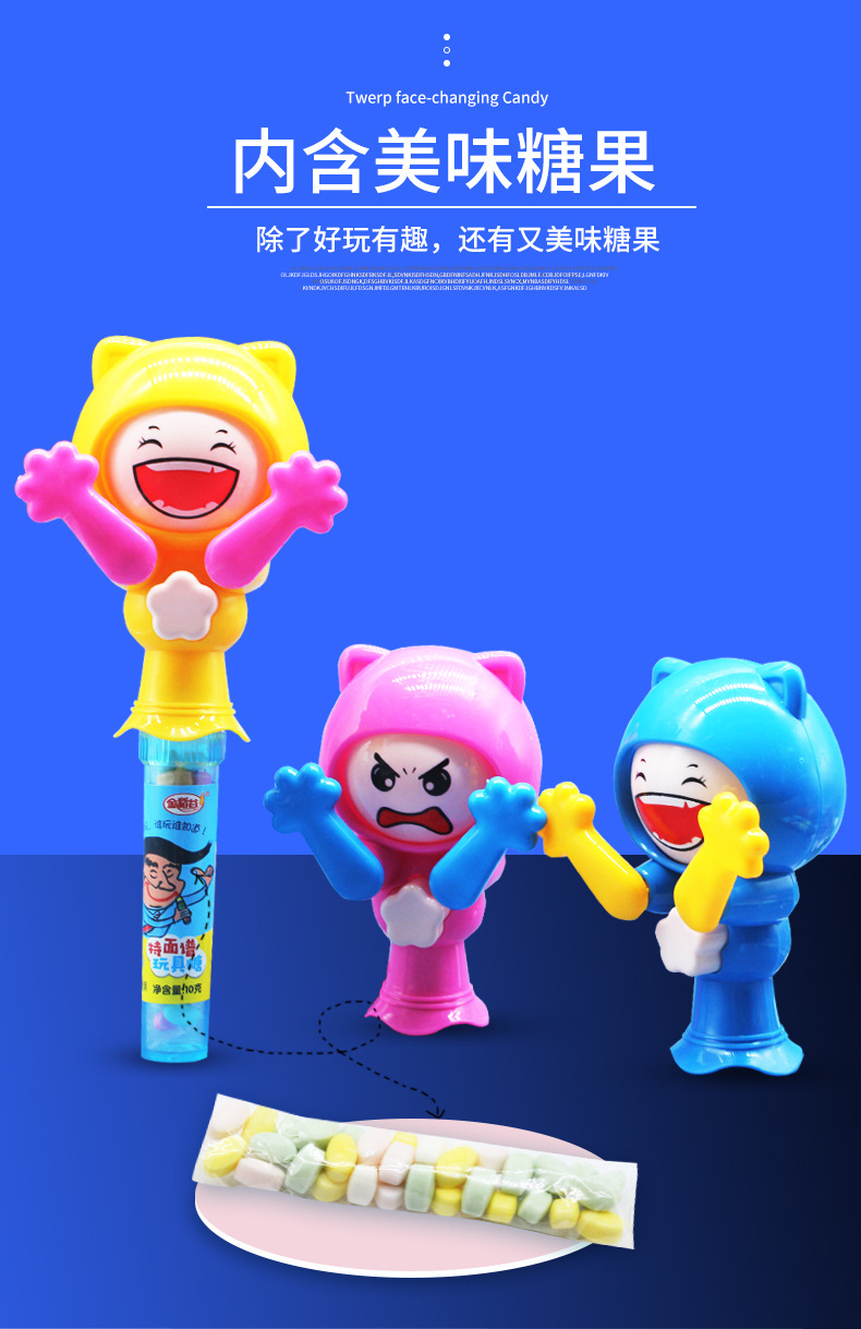陈瑞武:金稻谷旋转变脸玩具糖卡通趣味转脸棒 跳跳糖