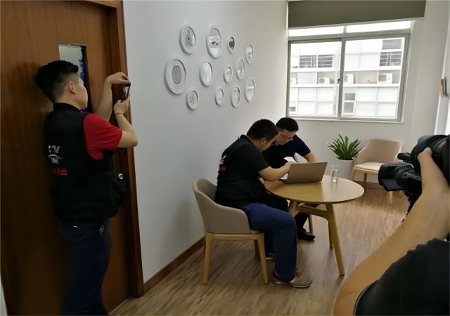 ▲CCTV《超越》栏目摄制组对高盈量化云进行品牌专访。