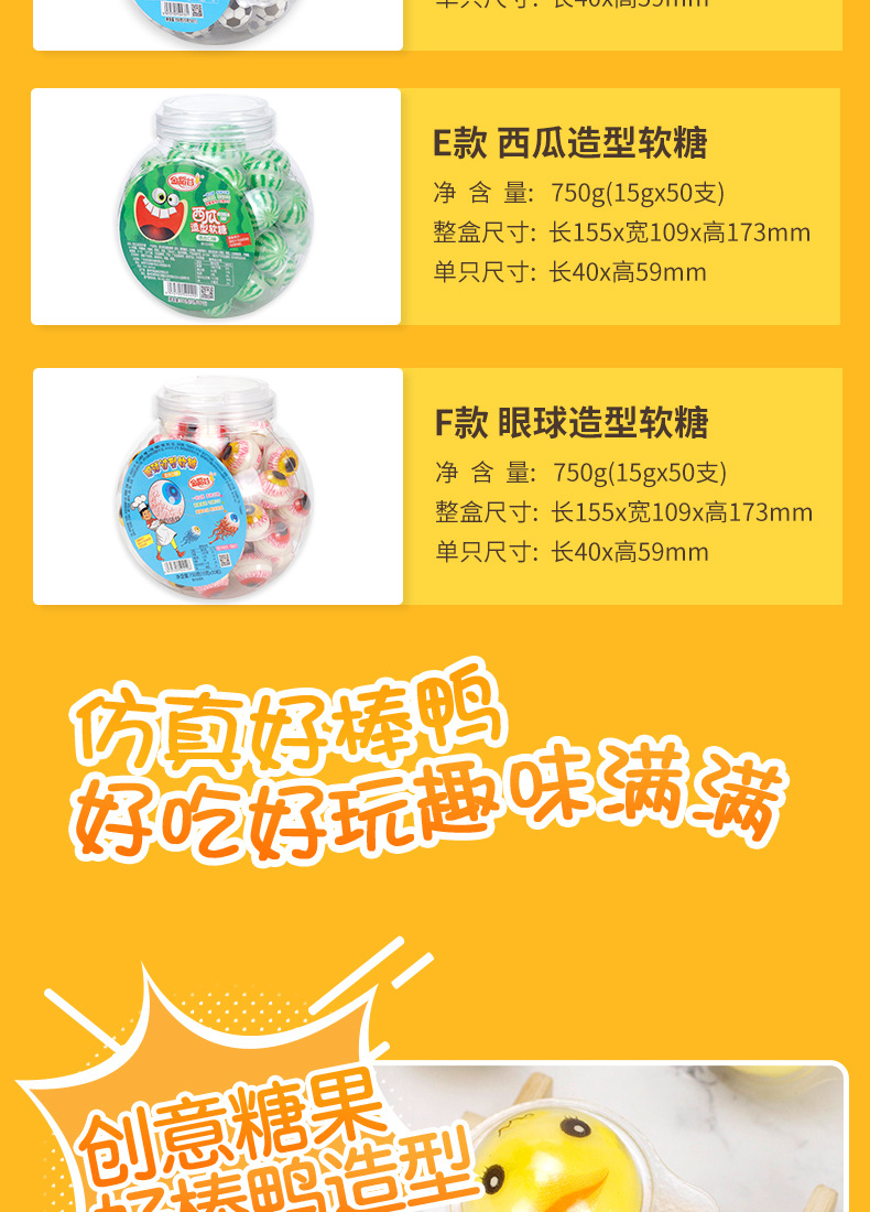 陈瑞武:金稻谷15g眼球糖卡通熊猫糖小黄鸭糖多款造型软糖地球糖