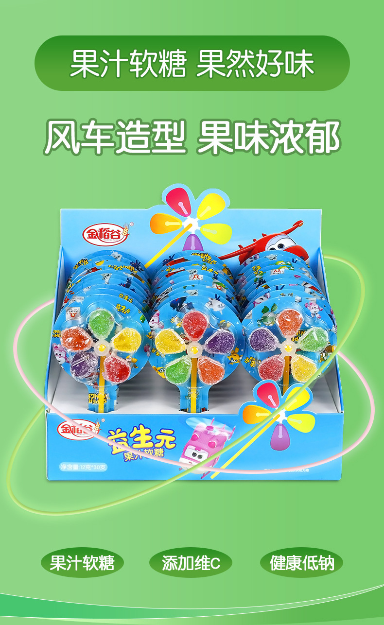 陈瑞武:金稻谷益生元五彩风车糖软糖儿童零食 盒装糖果卡通超飞棒棒糖