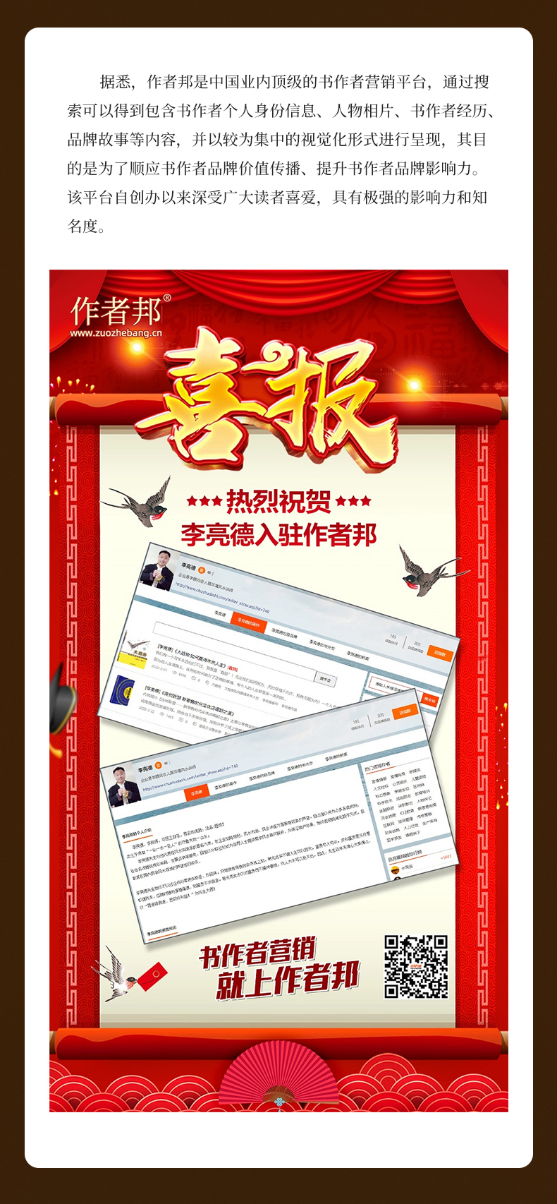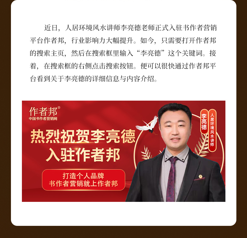 李亮德:恭喜企业易学顾问李亮德老师正式入驻书作者营销平台作者邦
