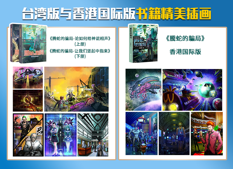 米高猫(本名张公辅)老师的著作《腾蛇的骗局》,近期推出了由金城出版社全新出版的大陆版上下集。引起了不少读者朋友的关注和支持。在这部大陆版上下集《腾蛇的骗局》上线国内各大图书销售平台的同时,它的其他版本也引起了广泛的关注。事实上,这部著作近年来也同时出版了台湾版和国际版。在海外市场火爆热销,受众多科幻书迷们的喜爱。相对于大陆版来说,繁体版本未删减的完整版,拥有更多值得大家阅读和鉴赏的精彩。下面,笔者就这几个版本的异同等,做下相应的总结,以供读者朋友了解。