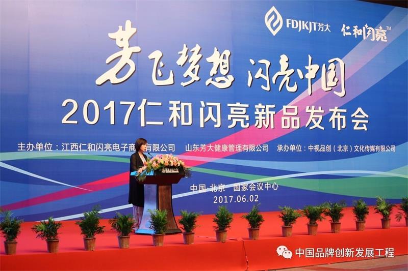 6月2日,由江西仁和闪亮电子商务有限公司、山东芳大健康管理有限公司主办,中视品创(北京)文化传媒有限公司承办的“芳”飞梦想、闪亮中国暨2017仁和闪亮新品发布会在北京国家会议中心召开,正式发布了新品“仁和闪亮悦目倾城牛磺酸眼部护理液”。出席本次发布会的有:全国工商联原副主席王治国、国务院新闻办原副主任杨正泉、仁和集团副总裁刘英、山东芳大健康管理有限公司创始人吴小芳以及现场数千位F.D团队代理商。