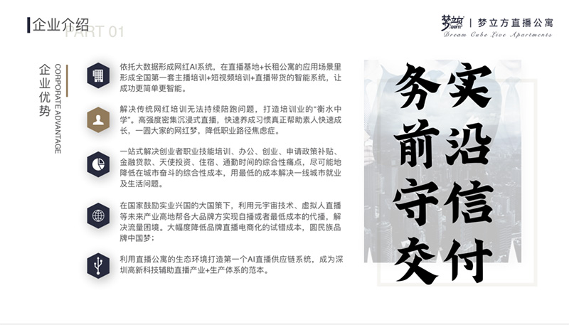 深圳梦立方直播公寓-中国第一个把网红主播+短视频培训直播基地(MCN)、创业孵化器、长租公寓、(人工智能)AI系统性培育主播高新科技、元宇宙虚拟人创新直播以及未来型直播供应链融合为一体的N合一新型产业模式。立志为广大青年成本更低、愿景更高、效率更高值地留在城市奋斗提供一个新的模式和平台,为商业地产的发展方向提供另一个探讨的可能。