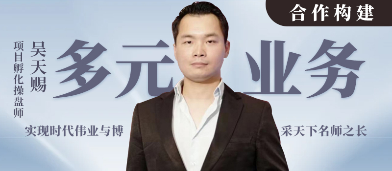 吴天赐老师的经验、实力以及资源等,都有着极大的赋能优势,因此,他开放和形成了自己独到的多元业务合作模块,并以此构建出合作上的业务优势和呈现。其中,合作的业务内容包括了,打造亿级矩阵社群流量、项目起盘咨询与孵化、招商加会销与培训、团队打造与构建标准化团队系统、项目操盘、项目引流文案撰写、零成本精准流量引流、营销策划与演说培训、营销系统构架以及商业模式顶层生态构架与商业咨询服务。