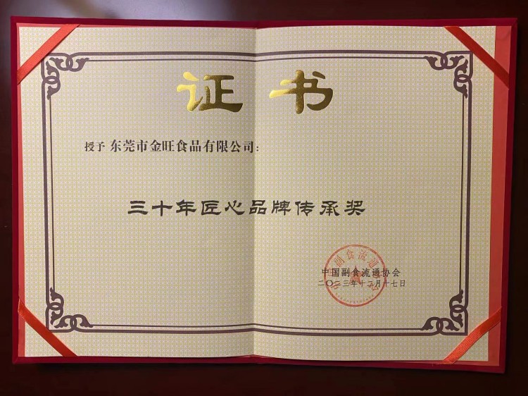 12月17日,中国副食流通协会第六届五次理事会(扩大)会议暨中国副食流通协会成立三十周年庆典活动在京顺利举行。金稻谷食品有限责任公司成功入围登榜,并被授予荣誉证书。金旺食品有限公司荣获三十年匠心品牌传承奖,同时  陈瑞武 先生被授予 三十年行业深耕贡献奖此次金稻谷食品荣誉加身,脱颖而出,可以说是对金稻谷食品在行业内的极大认可。