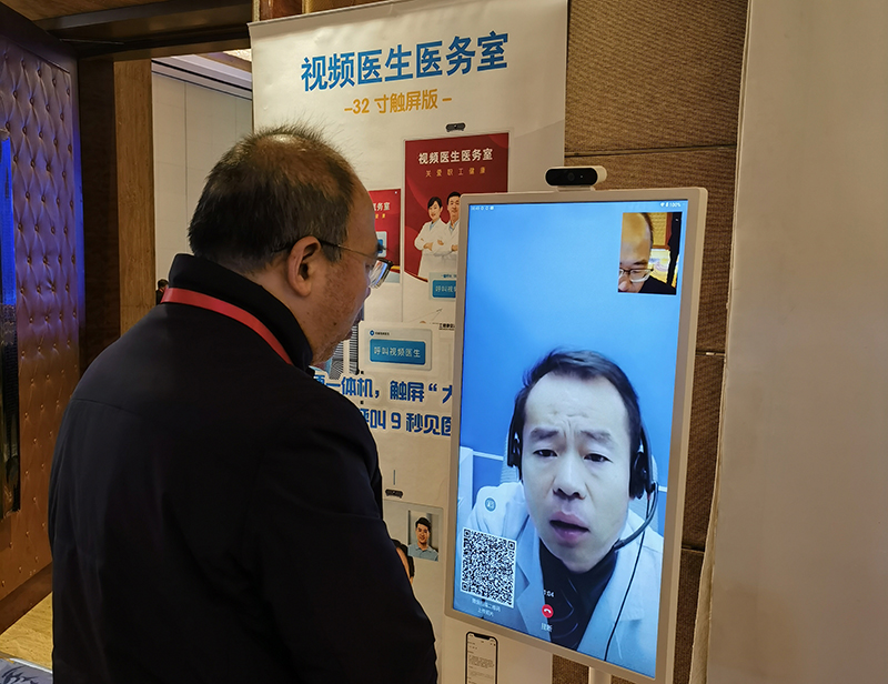 《视频医生云医务室》视频医生问诊服务是针对企业健康驿站需求,定制的互联网医疗服务系统。借助优势医疗资源的集约化运营效应,通过我国5G创新科技成果,打造在企业健康驿站多人普惠“视频问诊+身体检测”服务。其功能包括:让职工全年7*24小时,全时段9秒内接通视频医生,面对面接受专业的诊疗服务,同时云医务室设备通过蓝牙连接《多参数检测仪》提供检测服务,让职工对自己身体18项指标天天体检。