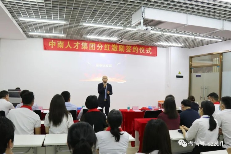 2022年5月6日下午,正点方略咨询辅导的中南人才集团全体管理人员欢欣齐聚,共同见证和感受集团简约而隆重的分红激励签约仪式。