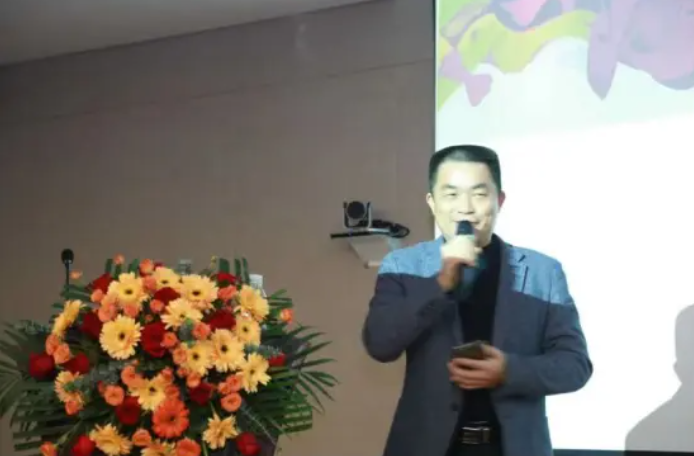 图为:广西到校外科技有限公司总经理邓占儒进行主题分享