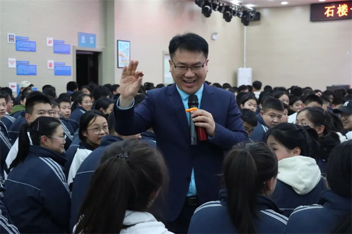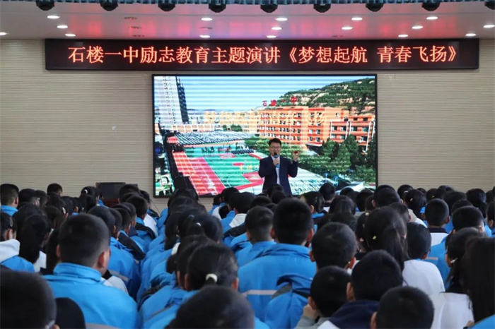 主讲人刘小军是石楼一中校友,从事青少年心理成长与演讲口才教学19年。他用自己的亲身经历,向学生们讲述了