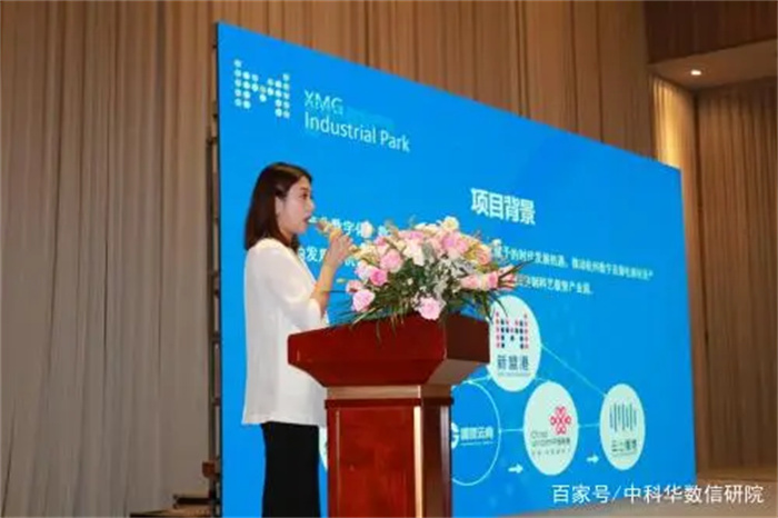 浙江科艺数智文化发展有限公司副总经理毛媛媛在大会上呼吁大家助力海宁企业的发展,开启“数智产业园助力共同富裕”的主题演讲。