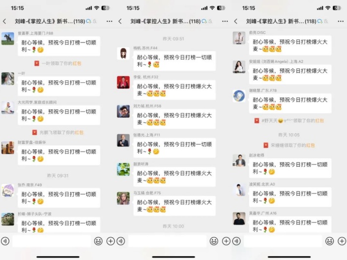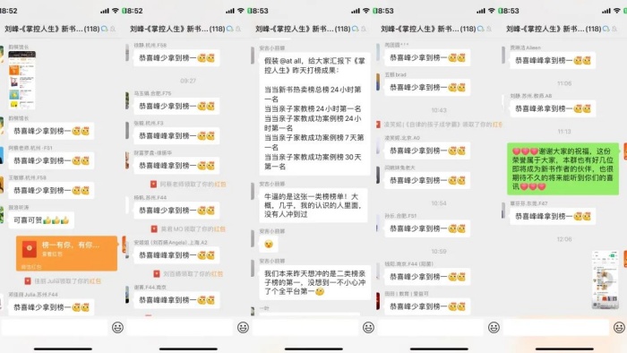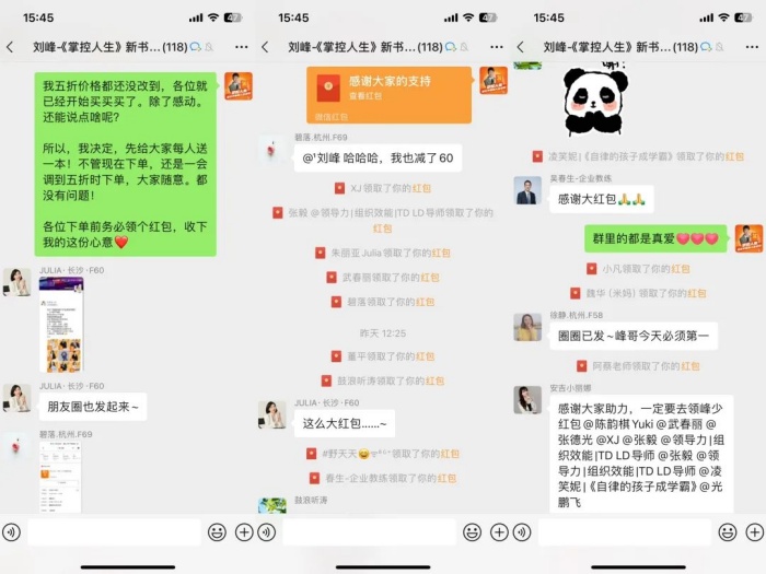 正当我在思考怎么办的时候,安吉又在我们峰盛的董事会群里给我留言,建议我给大家发个红包,就一本书的售价,表达一下对此刻下单的伙伴的感谢。这想法和我不谋而合,这是价格都没调整好,就愿意支持的伙伴,想都不用想,都是我身边最支持我的【真爱】,他们如此的爱与支持,我又怎么能不做出反馈了。