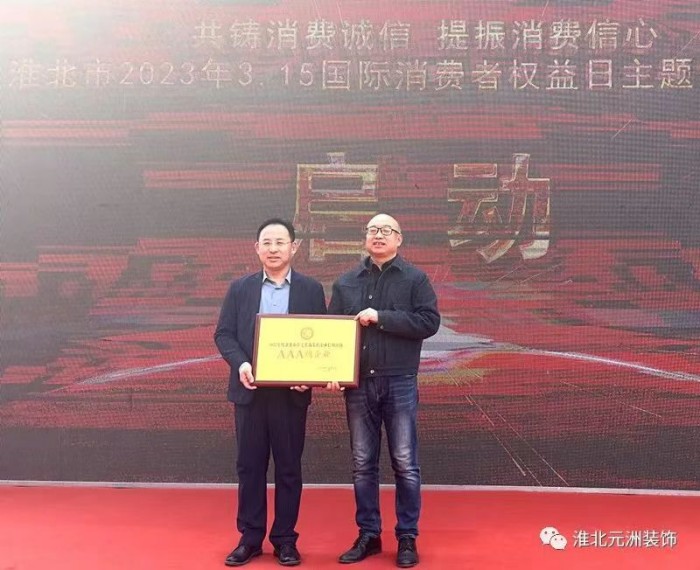 在本次活动现场,元洲装饰淮北公司获颁淮北市住宅装饰行业“AAA”级信用企业(行业最高等级、首批通过评价)荣誉。