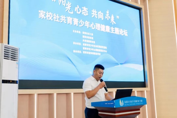 在论坛开幕式上,简阳市关工委执行主任赵燕鹰为论坛活动致辞,强调了心理健康教育在家校社共育中的重要性,她也表示关工委作为党的重要组织,一直以来都关心着青少年的成长和发展。我们将一如既往地关注学生的心理健康,积极推动家校社合作,为青少年的健康成长营造良好环境。