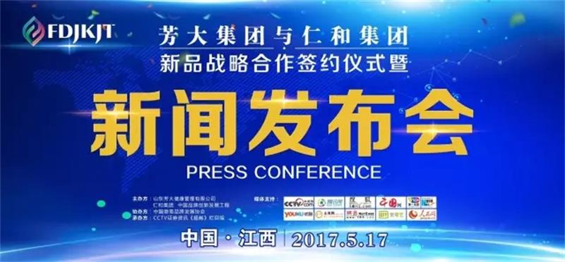 2017年5月17日,芳大集团与仁和集团的新品战略合作签约仪式暨新闻发布会在江西省宜春樟树市仁和集团会议室隆重举行。芳大集团董事长、FD团队创始人吴小芳女士、仁和集团副总裁兼仁和堂总经理刘英女士、中国品牌创新发展工程副秘书长耿德亚先生、芳大集团运营总监杜莹贤先生、仁和堂副总经理柯敏超先生,仁和堂品牌总监李欣女士,仁和堂推广总监李琴女士以及近二百名FD团队高层出席了本次活动。央视网、人民网、新华网、腾讯网、搜狐、中国网、优酷、土豆、网易、爱奇艺等数十家媒体对本次活动予以支持.