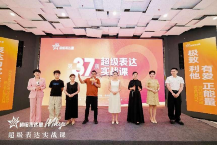 8月的最后一个周末,安徽电视台13楼的AHSPACE梦想舞台,见证了一场难以忘怀的表达盛宴。超级表达星第37期超级表达实战课在这里圆满结课。两天一晚,超级表达星金星给来自全国各地的近百位企业家授课。在这里,企业家们沉浸式学习,不断突破自我,提升表达力,梳理个人故事与品牌故事,重塑自我形象。