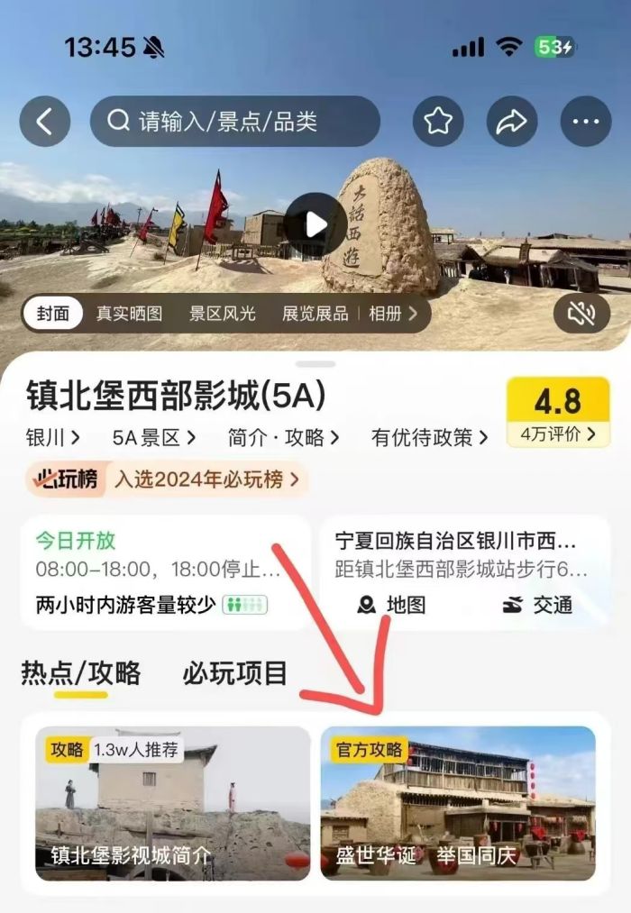这个必玩榜在美团众多榜单中极具分量,充分彰显了镇北堡西部影城的非凡魅力。而在这个十一假期,美团更是将镇北堡西部影城的十一活动放在了页面首页。