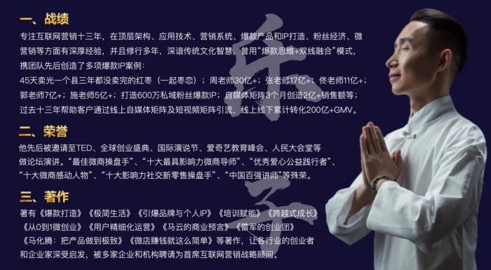 著有《引爆品牌与个人IP》《爆款打造》《跨越式成长》《极简生活》《培训赋能》《从0到1微创业》《用户精细化运营》《微店赚钱就这么简单》《雷军的创业团》《马云的商业预言》《马化腾:把产品做到极致》等著作,让各行业的创业者和企业家深受启发。
