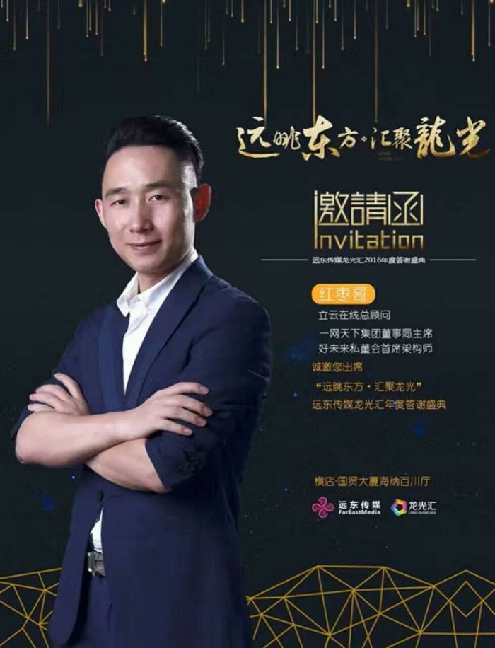 “远眺东方·汇聚龙光”远东传媒·龙光汇年度答谢会于12月29日在 “东方好莱坞”横店盛大举行。盛况空前,众多资本界领军人物纷纷到场,著名演员李楠、卢勇等明星大腕也高调亮相,其中著名微商微商导师、资深操盘手、被誉为微营销创业第一人的微商红人红枣哥受邀出席,共襄盛举,共谱大业。