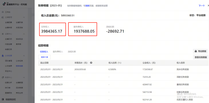 月音浪交易流水过亿(15个同样工会后台——如下图所示)