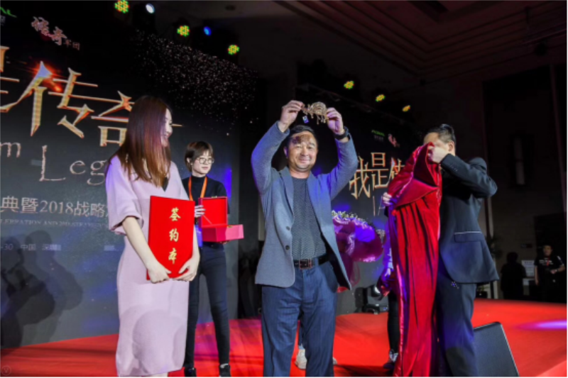 据了解,在本次盛典上,摩能国际董事长蒋德才亲自授于了赵亦灵荣耀纯金皇冠,与会嘉宾共同启动了 2018 年万亿大健康的战略目标,现场近千位行业大咖以及“传奇军团”代理商代表见证了这一激动人心的时刻!