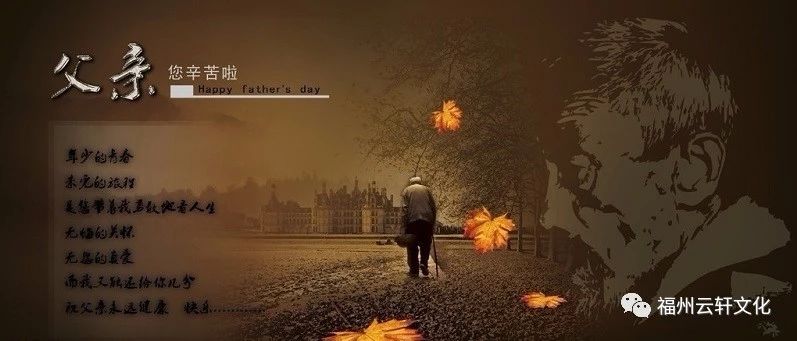 父亲节,顾名思义其实是感恩父亲的节日。父亲在孩子心中总是拥有一个伟岸的形象,好像老爸什么都擅长,唯一不擅长的就是表达自己的爱。但是他们对孩子的好,已融化在每一个分分秒秒。父亲的爱如山,深沉而凝重,总在严厉中绽放出;总在需要的时候才来临。父亲的爱总是让我们不得理解,但是只有当我们完全理解时才知道父亲的良苦用心。看似坚强的父亲,内心也有柔软似水的脆弱。云轩文化提醒大家,我们应该给父亲多一点理解,多一点关爱,多一点感恩,让父亲多一点微笑。云轩文化愿意以爱之名,在父亲节这个值得欢庆的日子,为天下所有的父亲,送上最美好、最真挚的祝福。