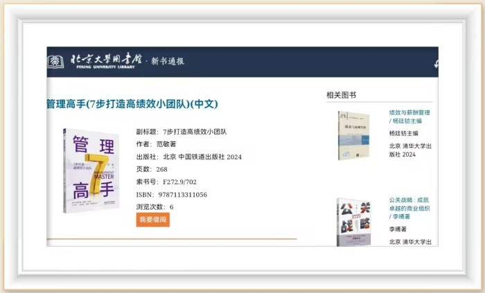 范敏:《管理高手》荣耀登上北京大学官方网站,进入北京大学、清华大学图书馆