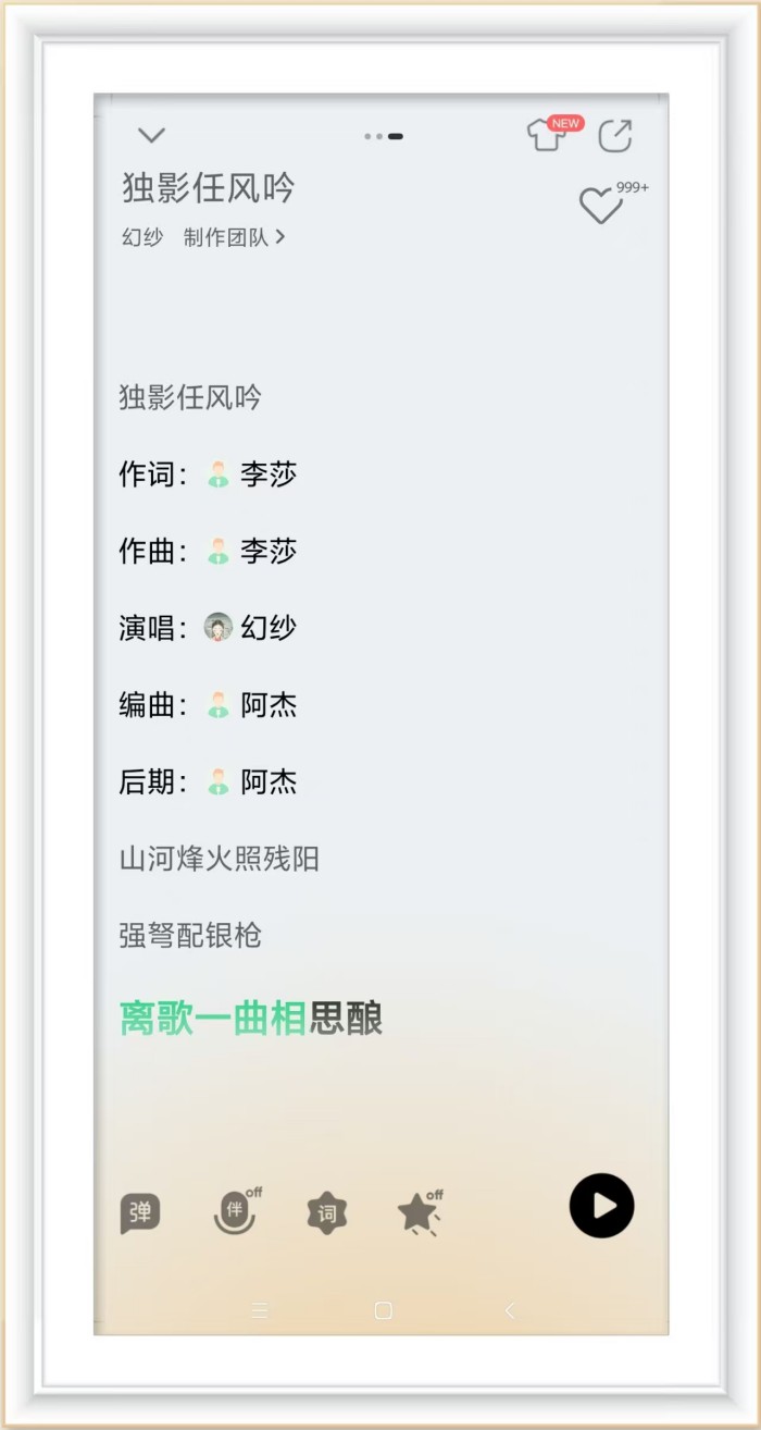 另一首主打歌《独影任风吟》则是李莎作词,李莎与Audrey共同作曲,幻纱用她极具感染力的嗓音将歌曲中孤独却又洒脱的江湖气质完美诠释。