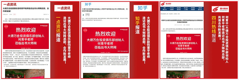 近年来,随着互联网的普及与高速发展,一些重要的新闻事件经过权威新闻报道并短暂发酵后,就会在社会中创造出广泛性影响,引发热议。 近日,关于“大德万合投资俱乐部创始人何青平造访出书大师网总部,共谋合作新发展”的一则新闻,经出书大师网报道后,现已登上了各大网络新闻媒体的头条,成为社会各界热议的焦点。