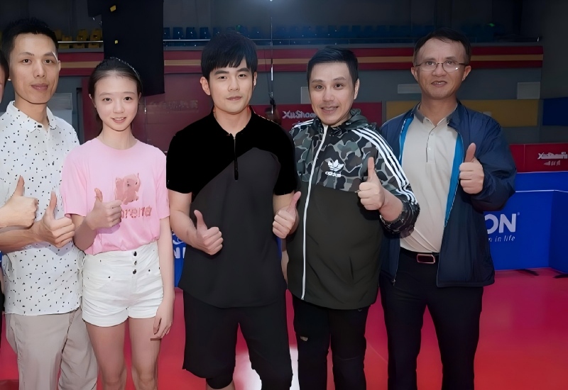 (洪诚阳老师(右二)弟子探班师弟周杰伦(左三))