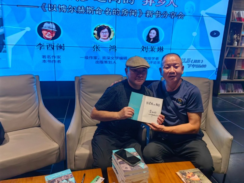 (李西闽(左)《以博尔赫斯命名的房间》新书分享会在穗举行)