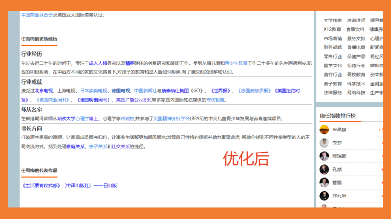 任雪梅老师对此深有感触:“作者邦团队的专业梳理,让我的多重角色和积累变得清晰而有力量。现在,无论是潜在合作伙伴还是读者,都能迅速理解我的专业坐标和价值所在,沟通效率大大提升,信任感也自然增强。” 这种优化带来的不仅是信息的清晰,更是合作机会与专业声誉的显著提升。