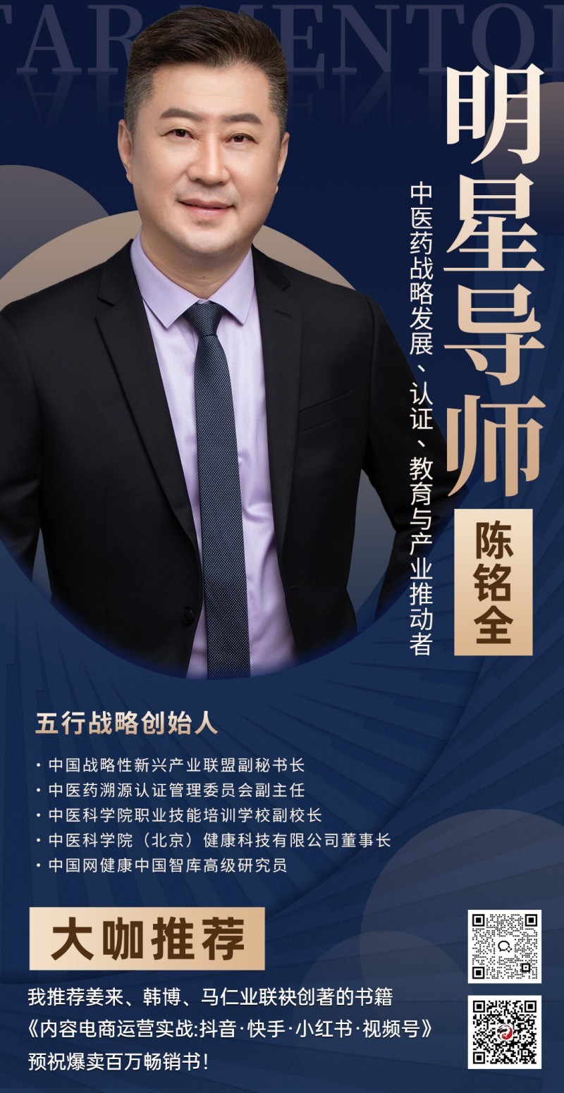 推荐人介绍:陈铭全先生是国内知名的企业战略顾问与慈善家,辽宁省委党校党务行政专业毕业。拥有四十余年跨领域从业经历:从沈阳北方贸易大厦的基层业务员,到香港时空资本控股集团执行总裁;从广州蒂沃商贸有限公司的创业者,到中华慈善总会大爱惠泽专项基金主任,他见证了中国商业的迭代与升级。 在行业地位上,他不仅是北京大学客座教授、中国企业发展研究院副院长,更首创“五行战略大系统”,整合现代农业、文旅教育等五大产业联盟,帮助数千名企业家完成从“创业者”到“卓越企业家”的蜕变。其提出的“社会责任创新商业模式”理念,被广泛应用于企业转型实践中。
