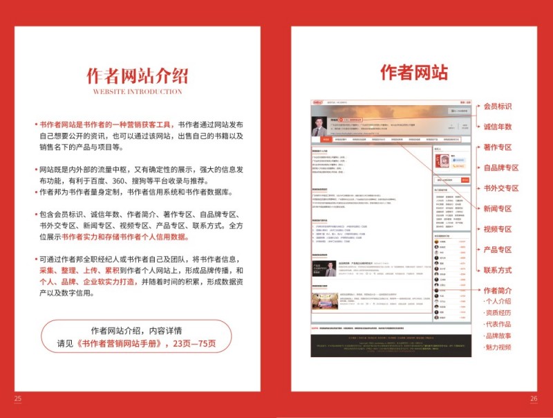 打造书作者个人IP是作者邦网的核心服务之一。平台帮助作者精准定位个人品牌形象,比如依据作者的专业领域、写作风格和受众群体,确定独特的人设标签。通过整合作者的著作、媒体报道、客户案例、社会评价等信息,转化为可查证的信任数据,集中展示在个人营销网站上。同时,作者还能通过网站发布文章、观点见解,分享专业知识经验,沉淀粉丝流量,摆脱第三方平台算法限制,直接触达受众。