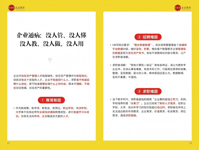 信任资产管理人才的稀缺,源于多重矛盾的交织。教育断层是首要难题。作为新政策催生的新岗位,高校、职校等教育机构尚未形成成熟的培养体系,批量输送专业人才更是无从谈起。