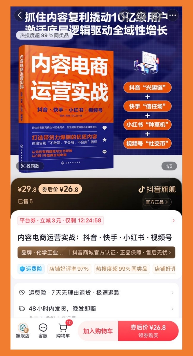 目前正值双十一前夕,是电商从业者最需要充电学习的时机,预计本书将会持续热销。建议有需要的读者尽快下单,《内容电商运营实战》不仅是一本书,更是一把钥匙,帮助内容创作者和电商商家解锁流量谜题,掌握爆单密码。翻开这本书,你或许就是下一个内容电商领域的规则制定者。