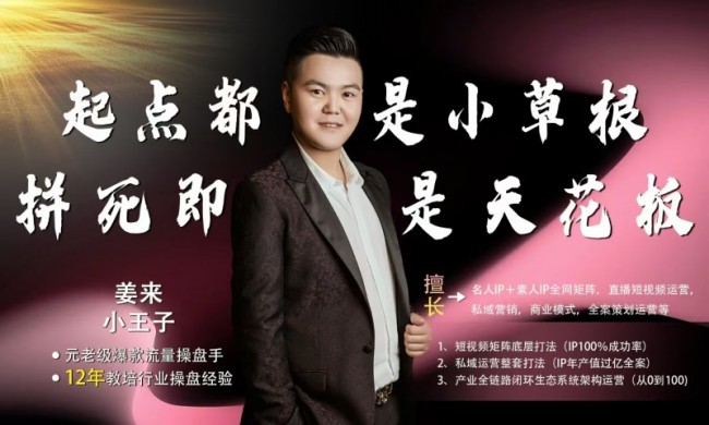 本书作者姜来是姜来传媒CEO,七星运营系统创始股东,新媒体营销实战专家,担任多家企业新媒体营销顾问,精通AI裂变营销、IP矩阵打造,被誉为“短视频小王子”。他深耕新媒体行业十余年,擅长将平台算法逻辑转化为可复制的商业增长模型,被行业评价为“能把流量玩出商业价值的实战派军师”。擅长名人IP+素人IP全网矩阵、直播短视频运营、私域营销、商业模式全案策划运营。掌握短视频矩阵底层打法、私域运营整套打法及产业全链路闭环生态系统架构运营能力。