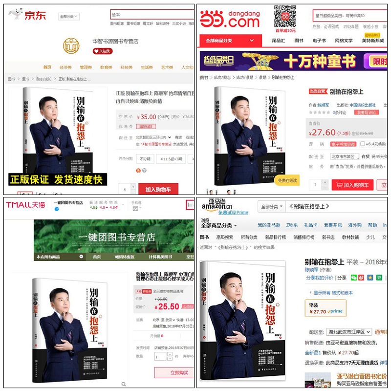 由出书大师策划出版陈顺军老师著作《别输在抱怨上》全渠道上架,火爆热销,一时间风靡网络,收到无数好评,荣登图书畅销榜,作者也收获了荣誉和人气。无数书迷和粉丝看过之后纷纷称赞是浮躁时代的一股清流,教导人们找到成功的终极方法。该书的成功运作离不开出书大师背后团队的精心运营和策划,这个成功的案例既是为陈顺军老师打开了另一扇大门,也实现了出书大师一直以来倡导的为客户实现“出书成就自品牌”的内在价值。