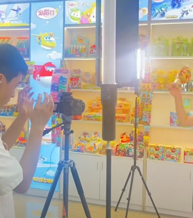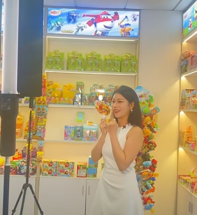 走进金稻谷的产品展示间,这里便是拍摄的核心场地,本身就是一个微缩的童话王国。四周陈列着各式各样卡通造型的糖果与零食,从憨态可掬的动物形象,到英勇帅气的动漫英雄,色彩斑斓,琳琅满目。模特置身其中,仿佛成为了这个糖果王国的代言人。她的展示,不是机械的推销,而是沉浸式的分享。当她拿起一颗软糖,眼中闪烁的光芒与孩子收到礼物时的惊喜别无二致;当她介绍一款新口味的棒棒糖,语气里的兴奋足以感染任何一位观众。