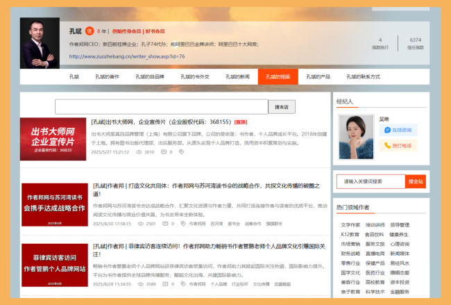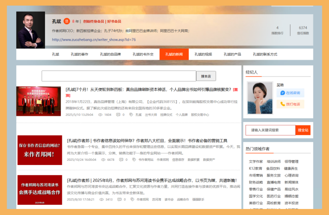 在数字化时代,书作者不仅需要创作优秀的作品,还需要管理自己的个人信息、作品数据、品牌形象等。这些信息包括个人简介、著作列表、新闻动态、联系方式等,它们不仅是作者与读者沟通的桥梁,更是构建个人品牌和实现商业价值的基础。然而,传统的信息保存方式,如纸质档案、分散的电子文档或社交媒体平台,往往存在易丢失、难管理、缺乏整合性等问题。例如,社交媒体上的信息可能被平台算法淹没,而个人电脑中的文件则容易因设备故障而丢失。因此,书作者急需一个专业、集中且持久的平台来保存和管理这些信息,以实现长期品牌建设和数据资产积累。今天,我将为大家介绍一个集展示、分类、销售功能于一身的专业网站——作者邦网,它能够完美解决书作者信息保存的难题。