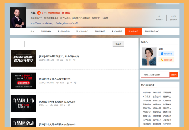 作者邦网为每位入驻的书作者提供一个专属的个人网站,这不仅是信息保存的工具,更是强大的营销获客平台。该网站包含八大核心栏目:作者介绍、著作展示、自品牌建设、书外交活动、新闻动态、视频内容、产品销售和联系方式。这些栏目覆盖了书作者所需的全部信息类型,确保全面展示作者的创作生涯和个人品牌。例如,作者可以通过“著作栏目”详细列出所有作品,并附带购买链接;通过“新闻栏目”发布最新动态,吸引媒体关注。网站还支持多媒体内容,如视频和图片,让展示更生动。更重要的是,这个网站作为流量中枢,能有效整合内外资源,帮助作者扩大影响力。通过这种集中展示,书作者可以避免信息碎片化,提升专业形象,同时方便读者和合作伙伴快速获取所需信息。