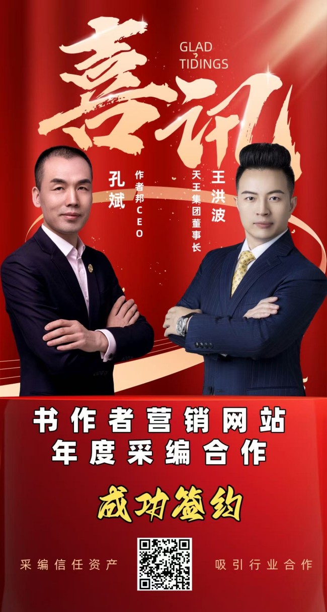 近日,国内专业的书作者品牌服务平台作者邦与天王集团董事长、世界华人成交天王王洪波老师成功签署书作者营销网站年度采编合作协议。此次合作,标志着王洪波老师个人品牌建设与影响力提升进入系统化、专业化的新阶段,也彰显了作者邦“作者信任资产”采编业务的独特价值,共同为打造王洪波老师年度百万影响力之旅奠定了坚实基础。
